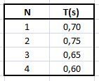 \[\bar{T} = \frac{1}{4} \sum_{i=1}^4 T_i = \left(0,68 \pm 0,03 \right)\ s\]