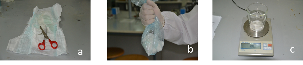 Attraverso l’uso di forbici e di un sacchetto di plastica, si estrarrà dal pannolino il sale in esso contenuto: il poliacrilato di sodio. Dopo averlo pesato e posto in un contenitore sarà aggiunta acqua distillata colorata fino a raggiungere la massima quantità che il sale può assorbire. In questo modo è possibile calcolare la capacità assorbente del sale. Alla fine si aggiungerà sale da cucina per dimostrare la reversibilità della reazione. A conclusione della esperienza i gruppi di lavoro elaboreranno i dati raccolti che saranno utilizzati per la discussione in classe