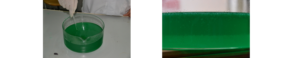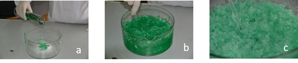- versare il sale nella bacinella e, utilizzando un cilindro graduato, aggiungere acqua distillata colorata e mescolare (figura 7a);