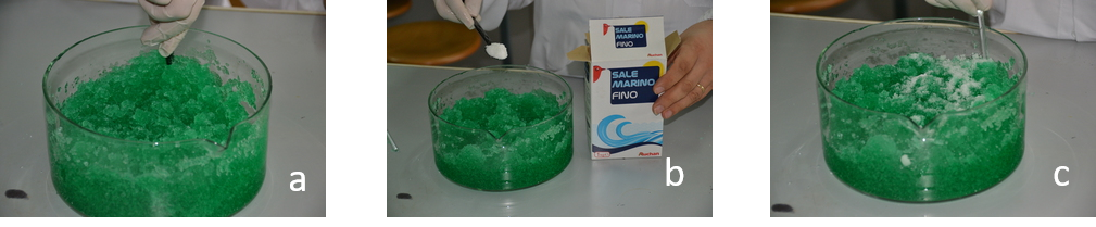 - aggiungere acqua distillata colorata fino a raggiungere la massima quantità che il sale può assorbire (figura 7c);