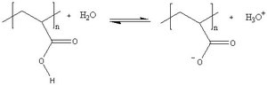 Alcuni idrogel sono sensibili all’aggiunta di acidi o di basi. In questo caso l’aggiunta di un acido determina la precipitazione del polimero a causa della protonazione dei gruppi carbossilato (figura 5).