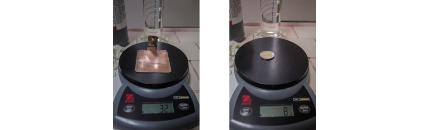– pesare la moneta e la lamina per annotare il peso iniziale (figura 4);
